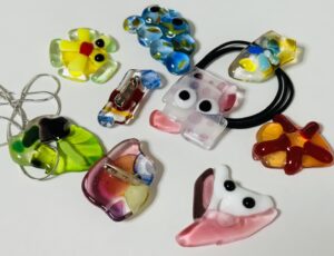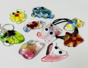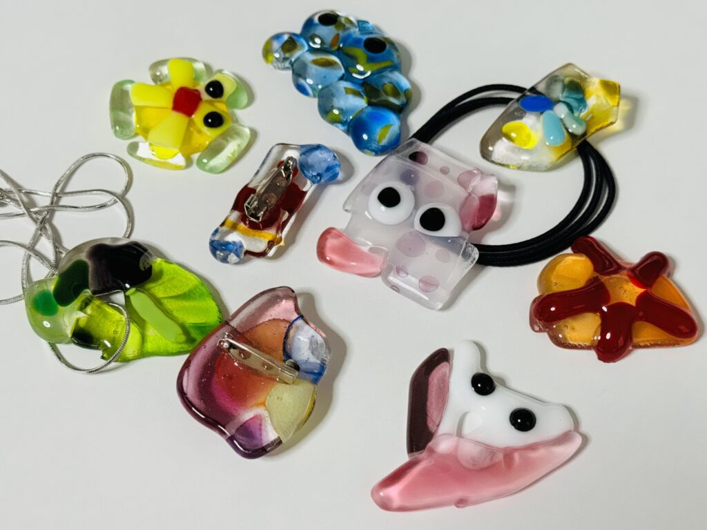 - SDGsの観点から、何度でも再生可能なガラスのコップの廃材を利用してアクセサリー類を製作しています。
