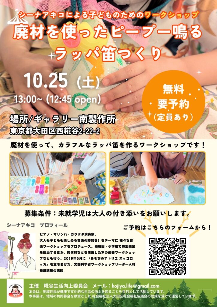 ★10/25(土)13:00~14:00「シーナアキコによる廃材を使ったピープー鳴るラッパ笛つくり」要予約・無料