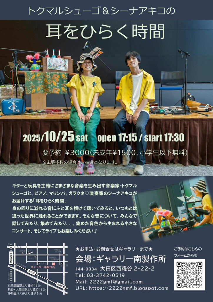 ★10/25(土)17:30~19:00「トクマルシューゴとシーナアキコの耳をひらく時間」要予約・3000円