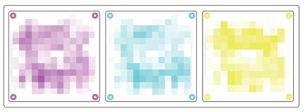 最後に、特典として配布予定の、3色のシールの柄をモザイクをかけて先行公開いたします!