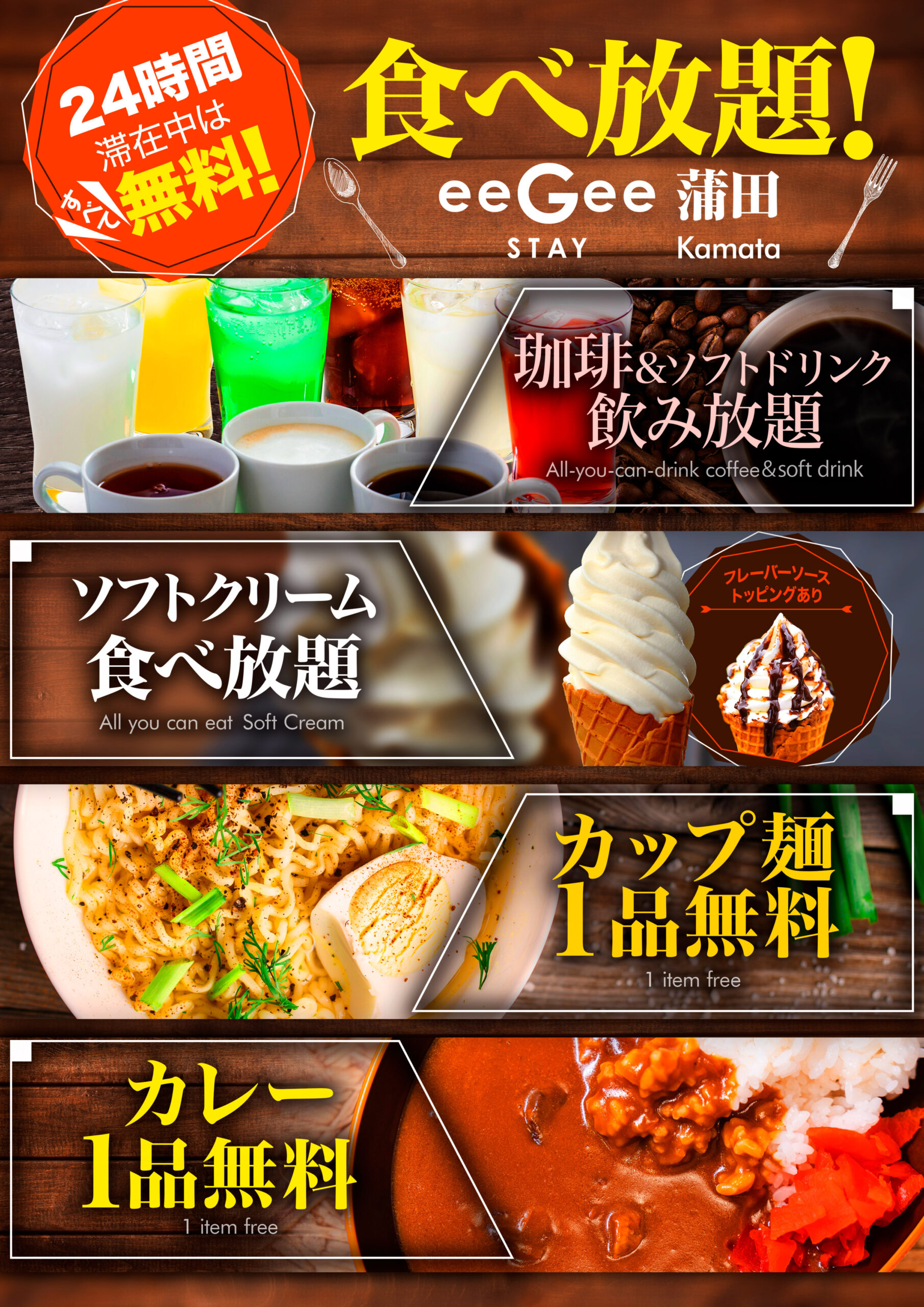ご滞在中はいつでも珈琲・ソフトドリンク飲み放題、ソフトクリーム食べ放題
