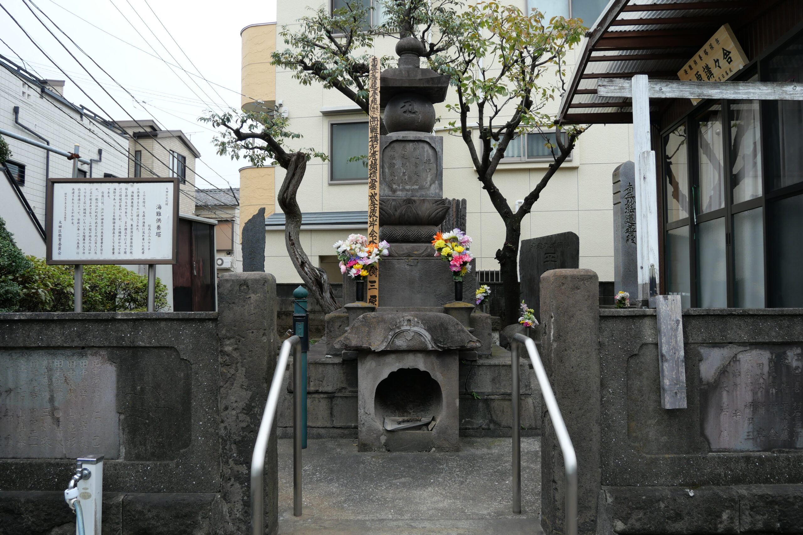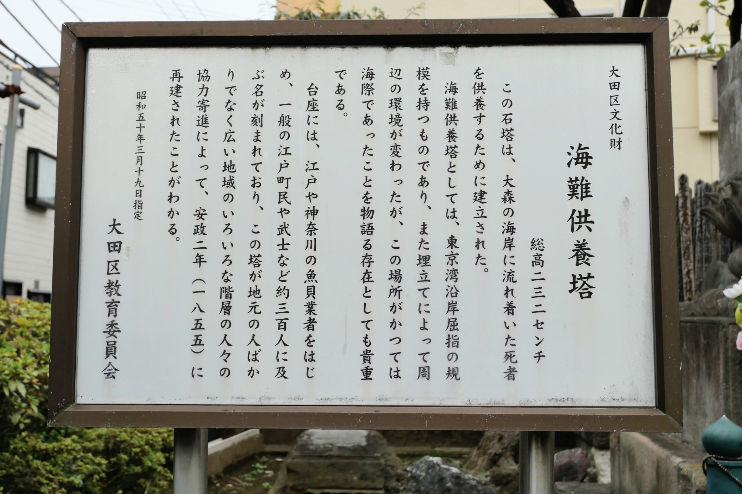 海難事故にあった人々を供養するため、安政2年(1855年)に建てられた。江戸市中や神奈川に及ぶ魚介業者をはじめ、町人、武士、役者等約300名の名が刻まれ、東京湾沿岸でも屈指の規模を持つ。区指定文化財。