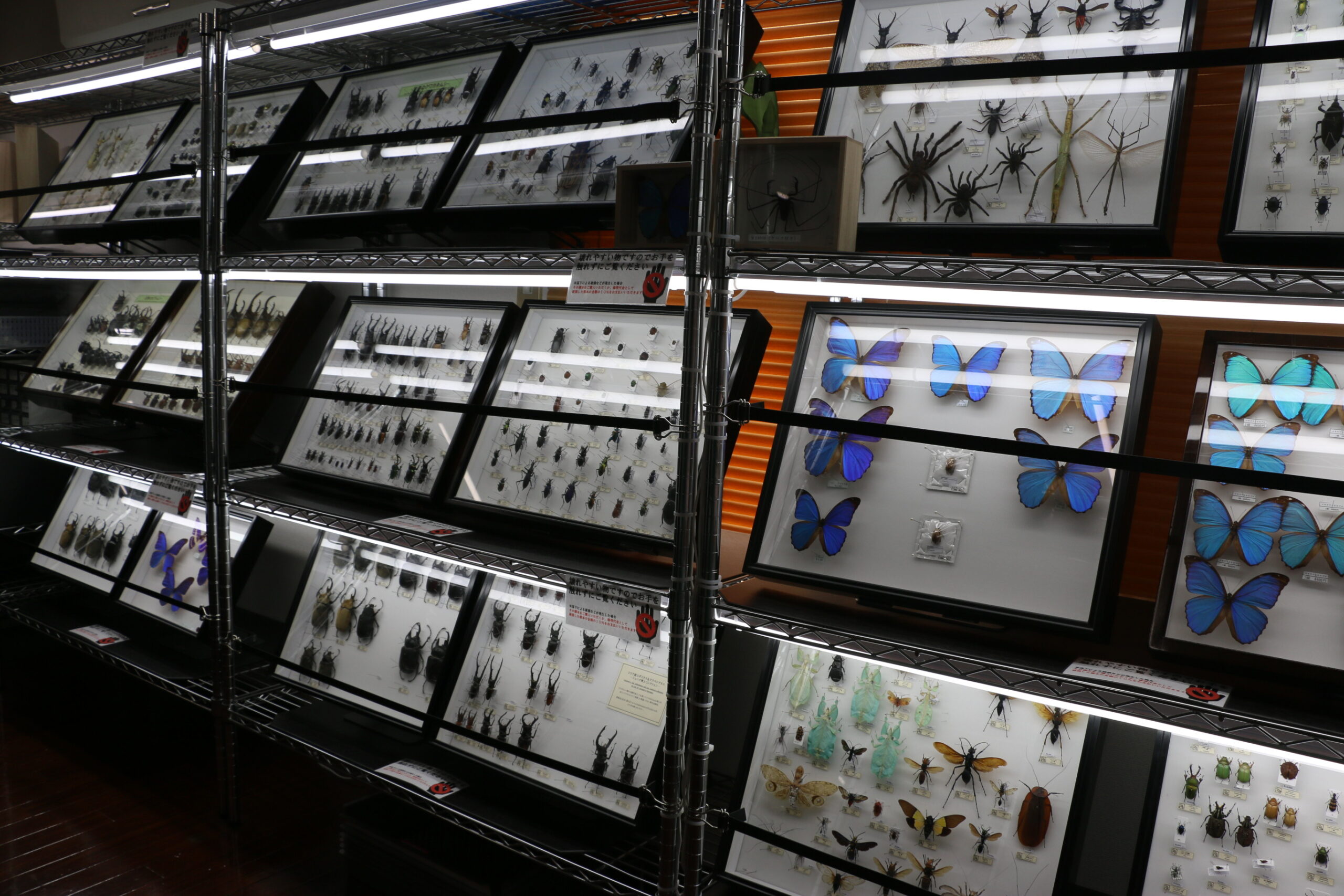 ヘラクレスなど希少なカブトムシ・クワガタが揃う、昆虫専門店。昆虫標本や飼育グッズも多数取り揃え、目玉の巨大ゲージ「最強ふれあいBOX」には、21種30頭が揃い、約15分間自由に触れられます。