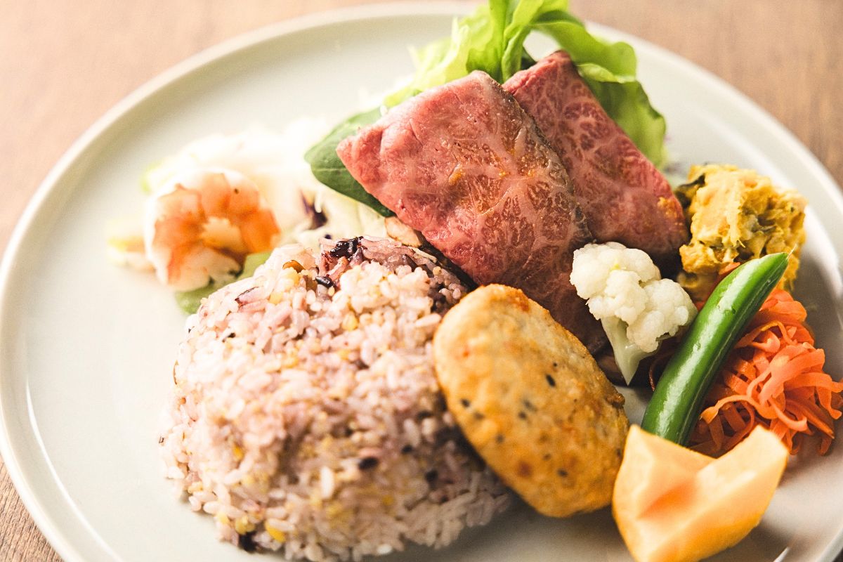 モーニングではコーヒーや紅茶と十数種類の菓子パンや惣菜パン、ケーキとのセットを楽しめ、11:00からは名物の「fu-hakuプレート(野菜に豆腐ハンバーグ、ローストポーク、お魚、五穀米を使ったヘルシープレート)」等を堪能できる。