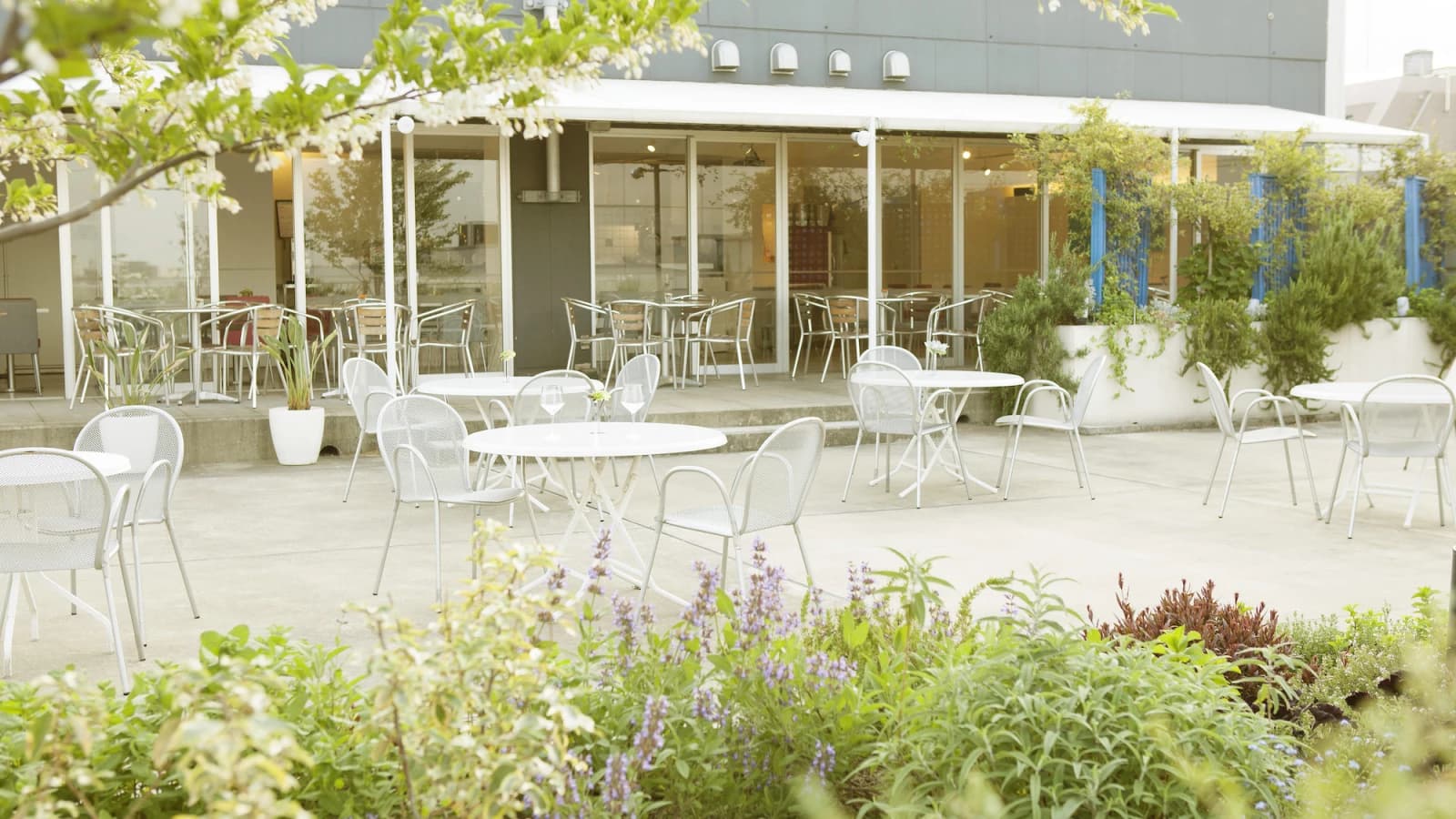 お料理に使うハーブガーデンを臨むテラス席で、ご家族やお仲間とおくつろぎください。