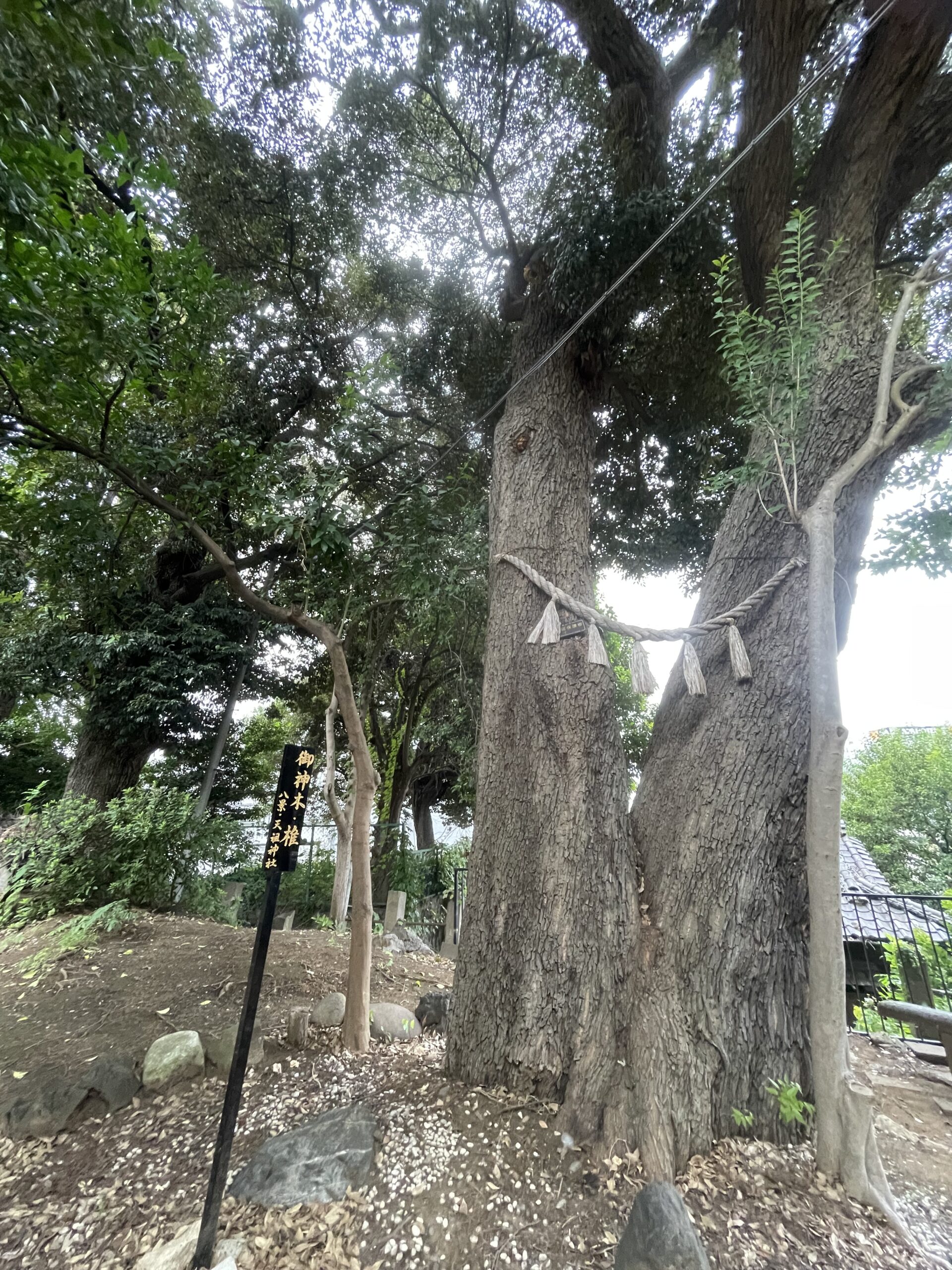 八景坂の上にあり、樹齢約400年の「椎」のご神木がある。創設年は不明。
