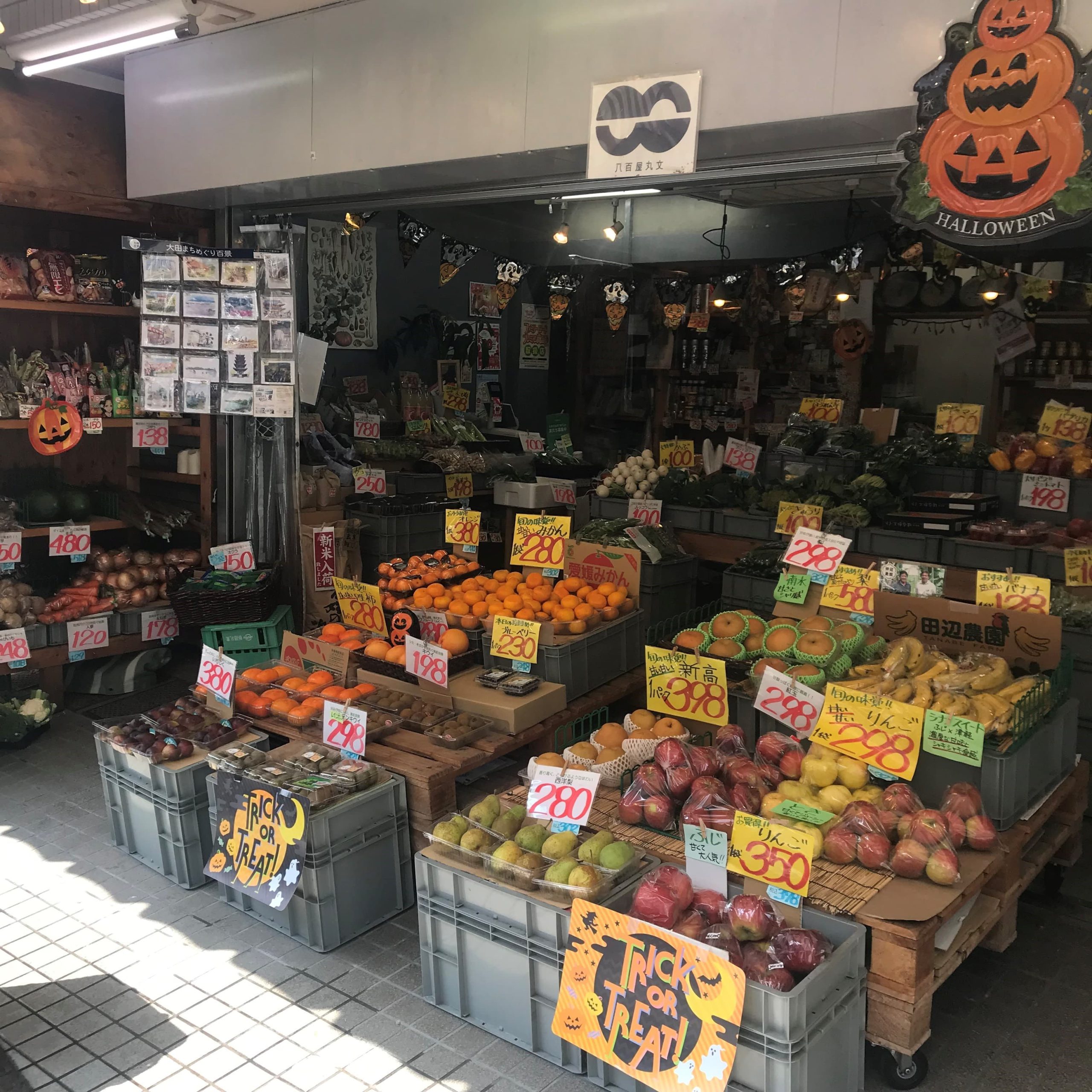 洗足池で昭和8年創業の地域密着の八百屋。旬の野菜や果物だけでなく、大田のお土産やはねぴょんグッズ、こだわりの商品が並ぶ道の駅のようなユニークなお店です。