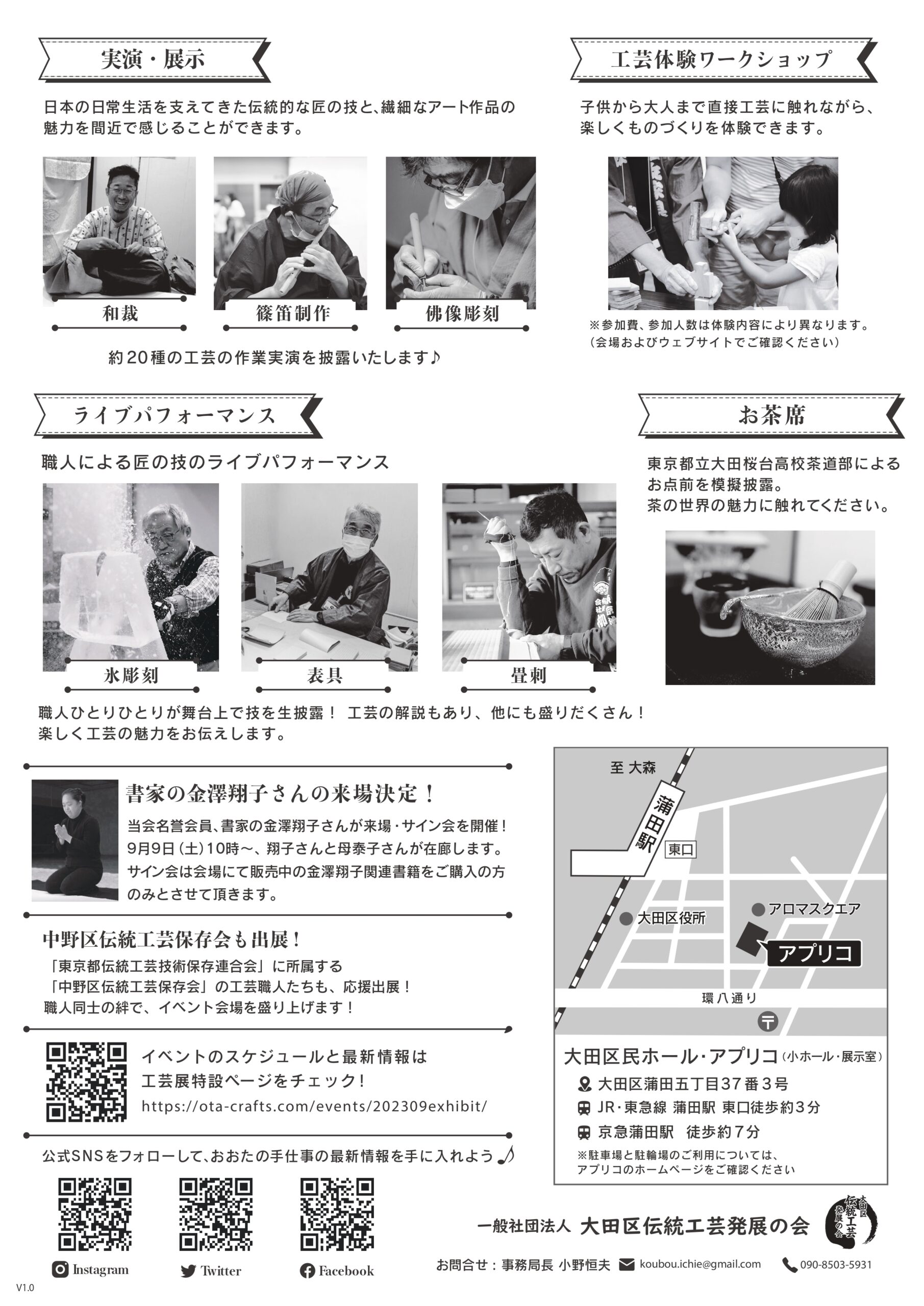 大田区内の伝統工芸士によるライブパフォーマンスやワーク―ショップなど行われ、日本の伝統工芸文化を体感できるイベントです。
