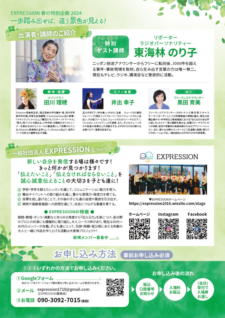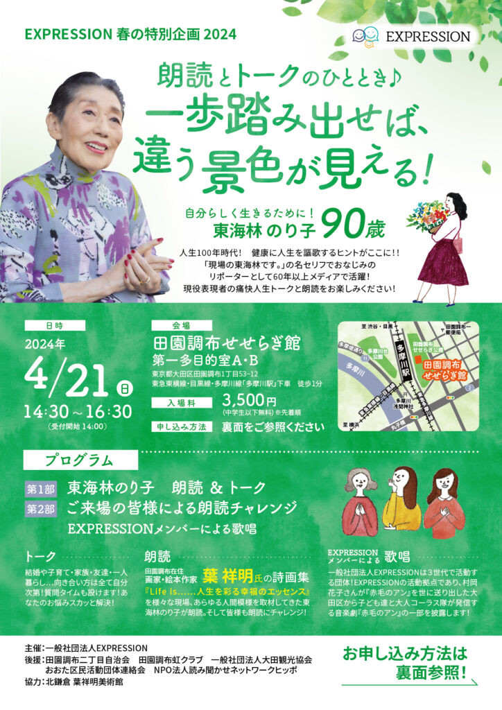また、2部では来場者参加型の朗読チャレンジや3世代で活動する団体「EXPRESSION」が音楽劇『赤毛のアン』を披露します