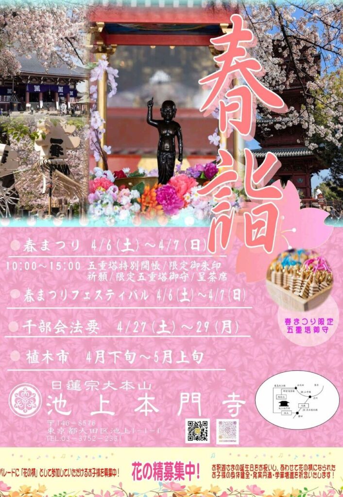 今年も『池上本門寺春まつり』が、4月6日(土)・7日(日)で開催されます。
