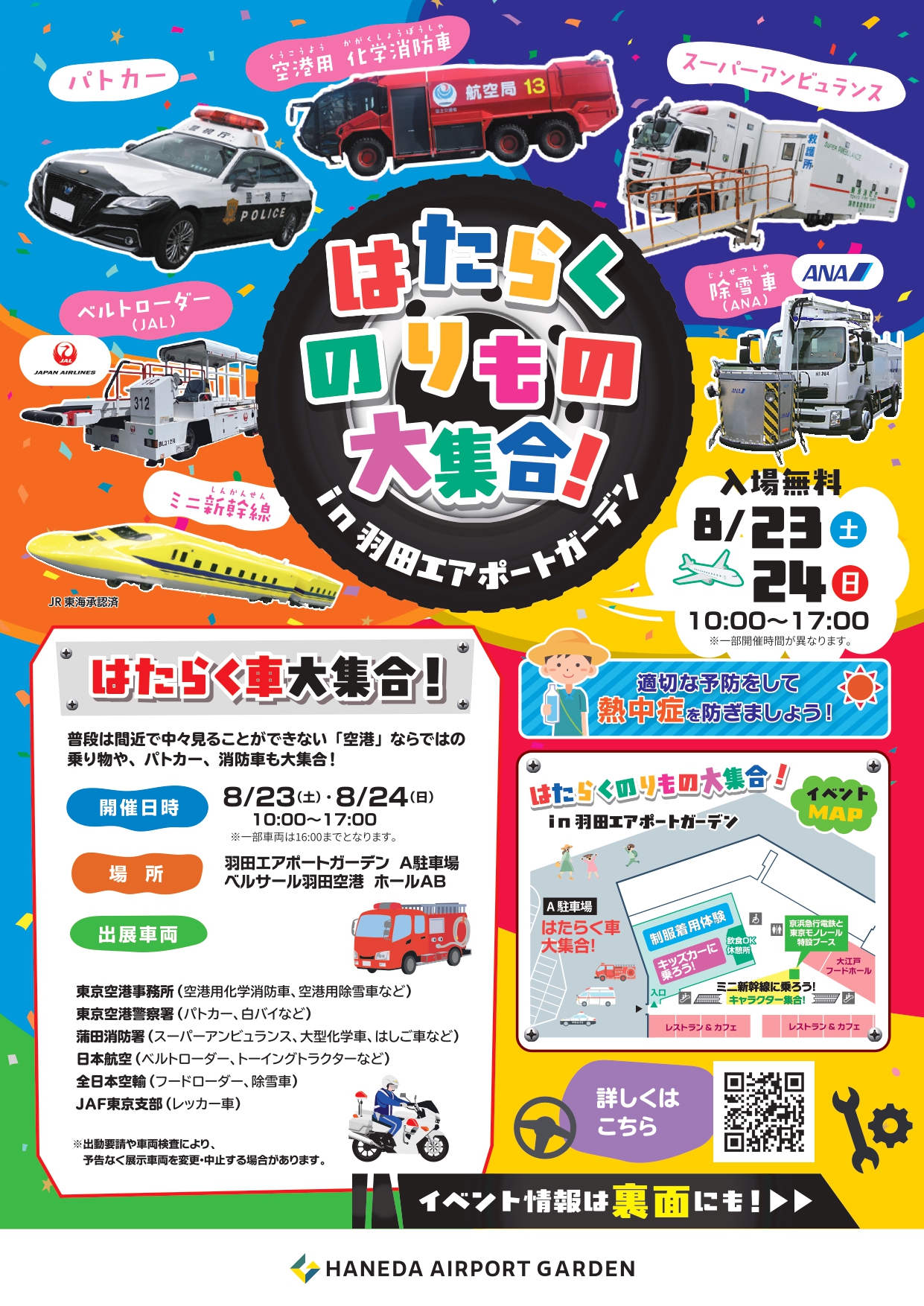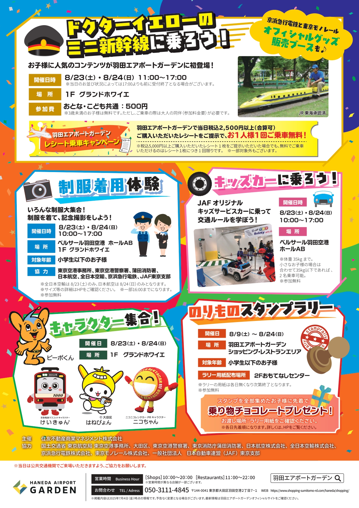 8月23日(土)・24日(日)に羽田エアポートガーデンで「はたらくのりもの大集合」が開催されます! 乗り物好きにはたまらないコンテンツが盛りだくさん!