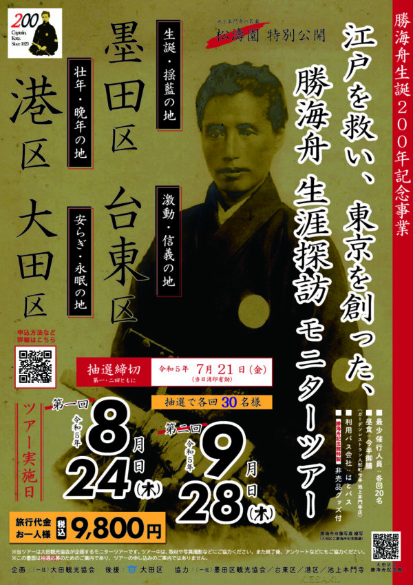 勝海舟 生誕200周年を記念した「勝海舟 生涯探訪 モニターツアー」を実施します。