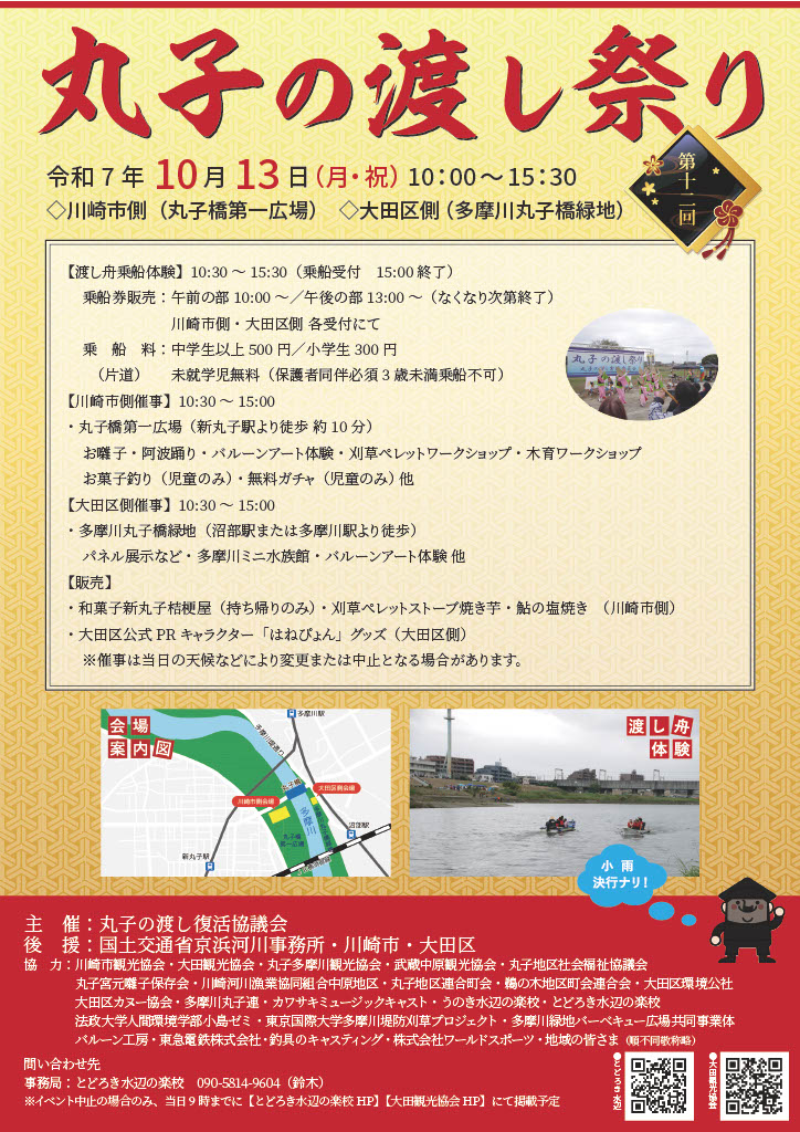 当日は渡し舟乗船体験の他、大田区側・川崎市側の両岸で多彩な企画も開催されます!!
