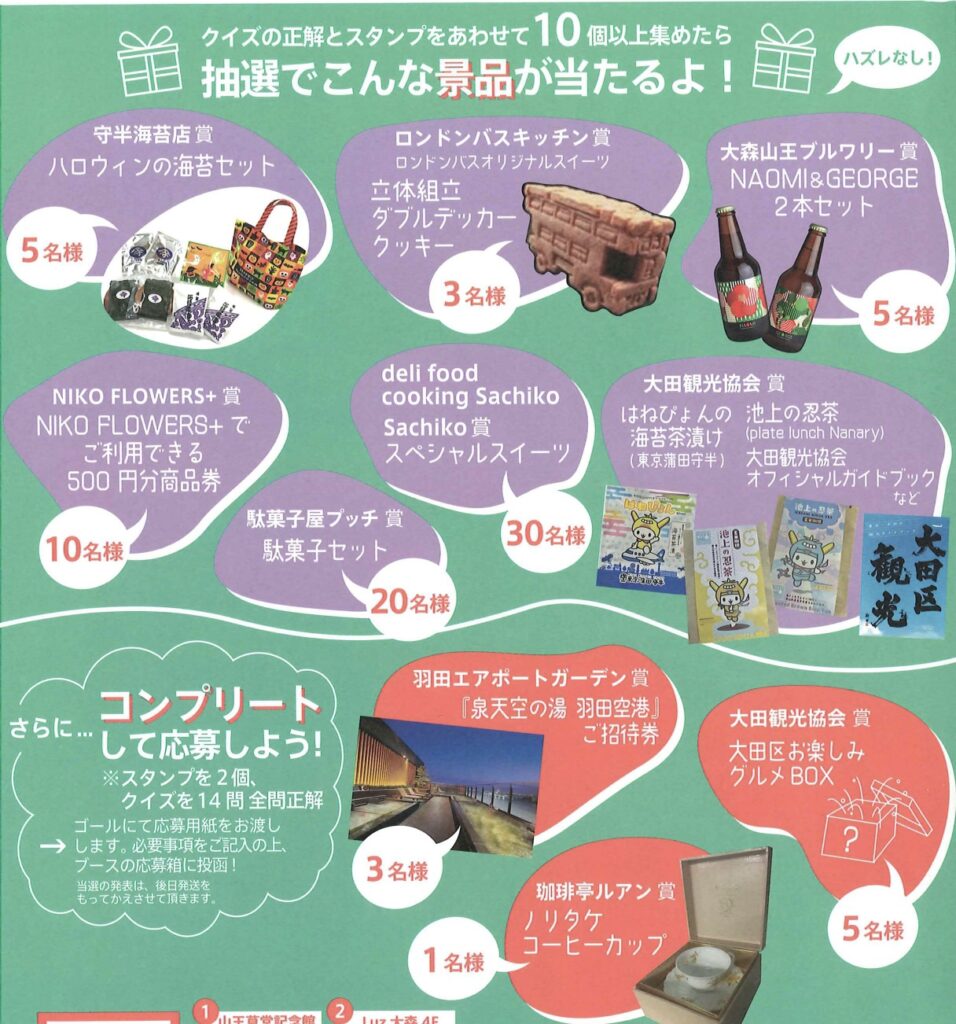 ③ゴールでクイズの答え合わせをして、全問正解者には抽選で大田区ゆかりの景品をプレゼント(*^-^*)