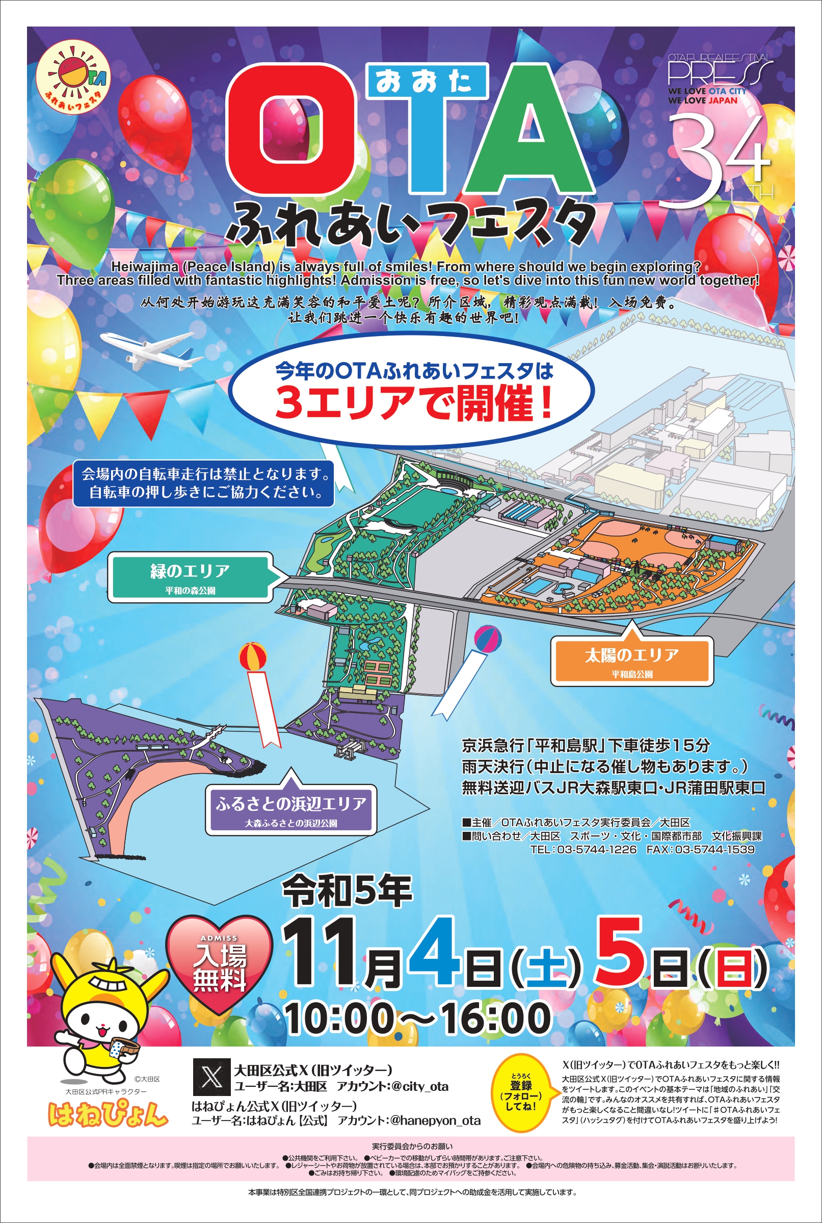 今年で34回目となる区内最大の区民まつり「OTAふれあいフェスタ」が11月4日(土)、5日(日)の2日間にわたって開催されます。