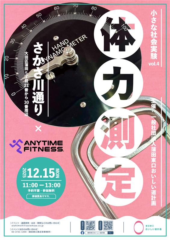 「通りすがりで、今の自分を測ってみる?」 —— 三角広場でゆるっと“体力測定”! (一社)蒲田東口おいしい道計画によるさかさ川通りの小さな社会実験シリーズ第4弾は、さかさ川通りの三角広場での“体力測定...