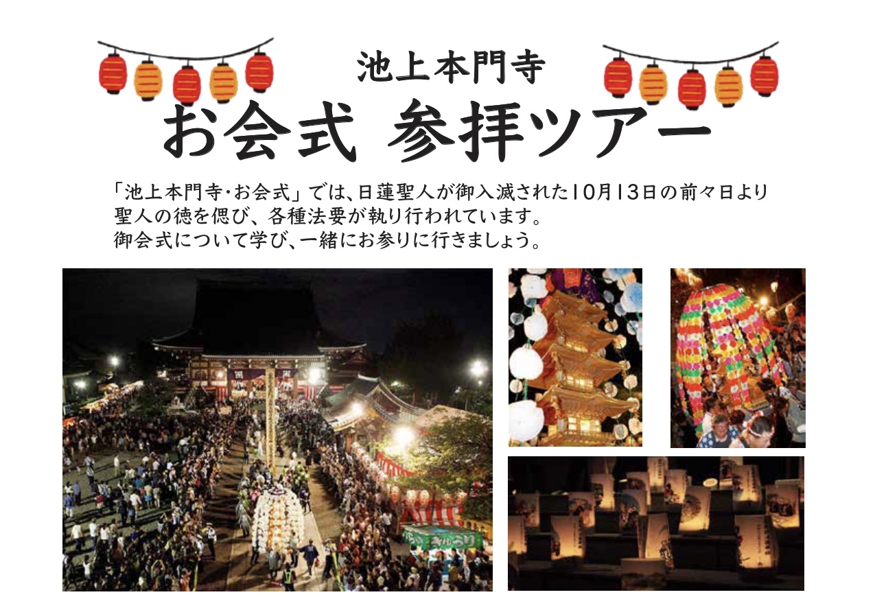 住職の案内でめぐる、特別なお会式参拝ツアー お会式の地・池上を深く体験できる特別ツアーを永寿院が開催します。吉田ご住職による「お会式について」の講義や、灯明を捧げる献灯法要で心を整えた後、お食事をはさん...