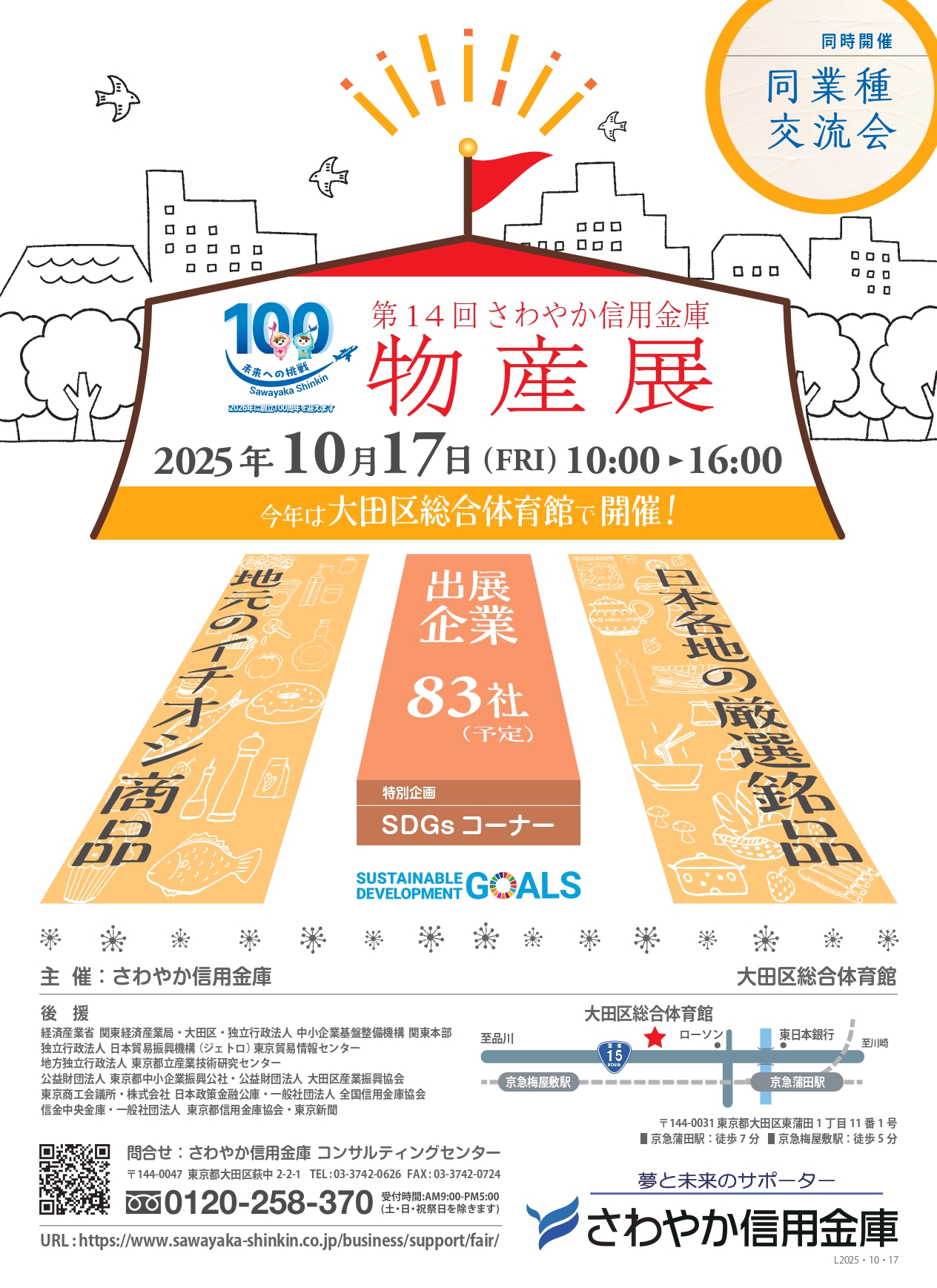 日本各地の厳選銘品と地元のイチオシ商品が大集結! 10月17日(金)に大田区総合体育館で「第14回さわやか信用金庫物産展」が開催されます。 大田区の名産品はもちろん、日本各地の厳選された商品も並びます。 下町ボブスレーの展示も予定...