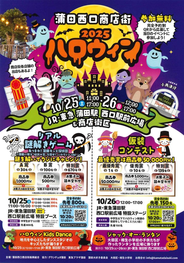 蒲田西口商店街でハロウィンを楽しもう! 10月25日(土)・26日(日)に蒲田西口商店街でハロウィンイベントが開催されます! 仮装イベントや謎解きゲームなどお子様が楽しめる内容となっています。 商店街加盟店舗も出店して...
