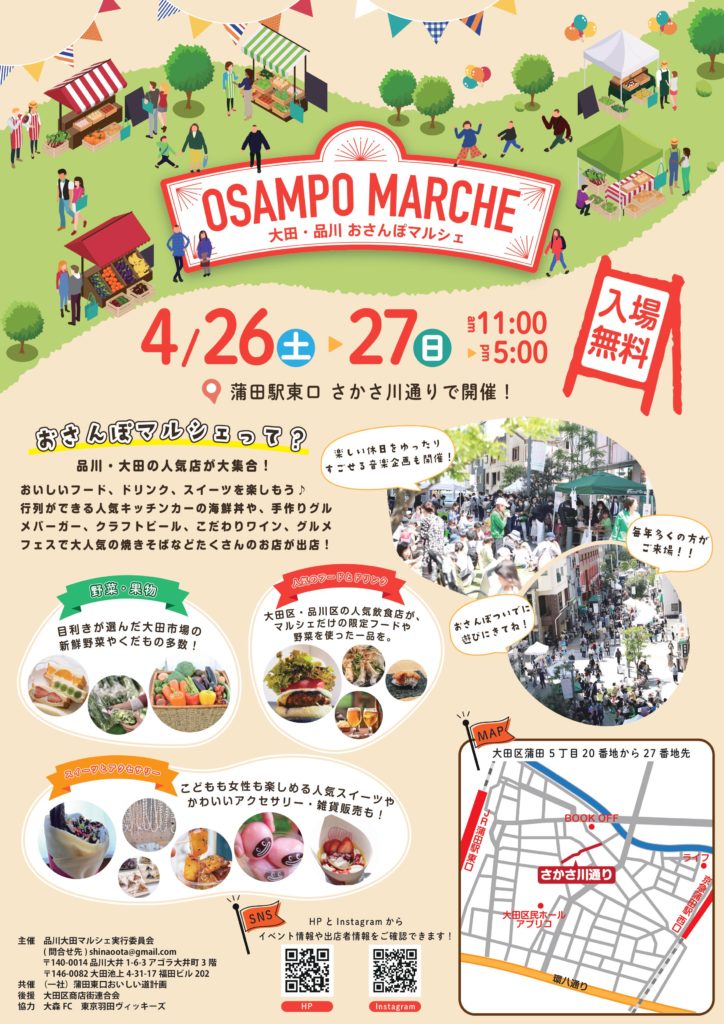 品川・大田おさんぽマルシェは、ちょっと足を延ばせば行ける距離にあるのに、普段の生活の中では行く機会が無いお店を紹介するマルシェです。