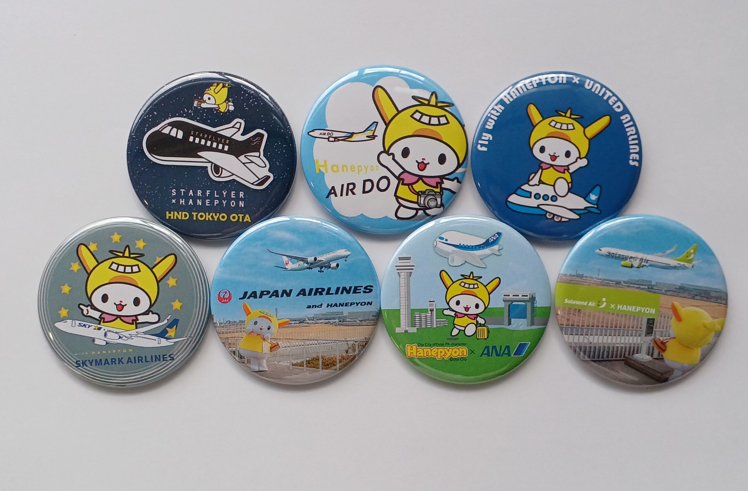 はねぴょん×航空会社のかわいいデザインの缶バッジをつくりませんか?