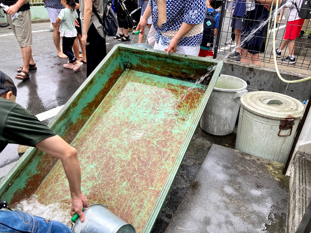 なかには、すでに水槽が空になってしまい、追加で水を貯めているそばから汲んでいる光景も……。