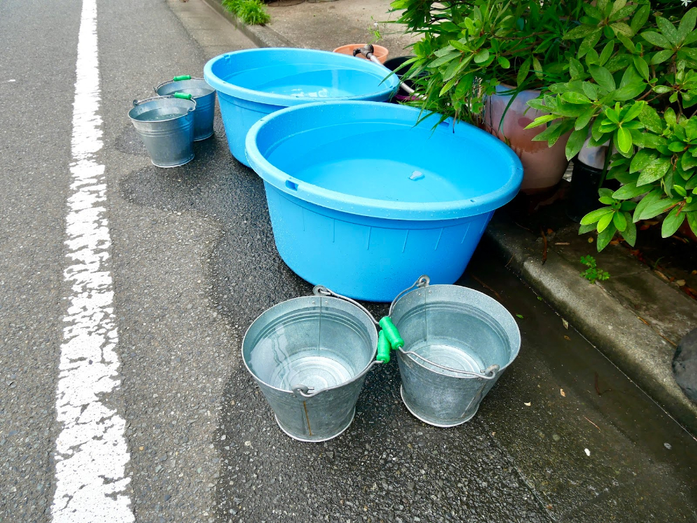 街が「バケツだらけ」なのです!!!