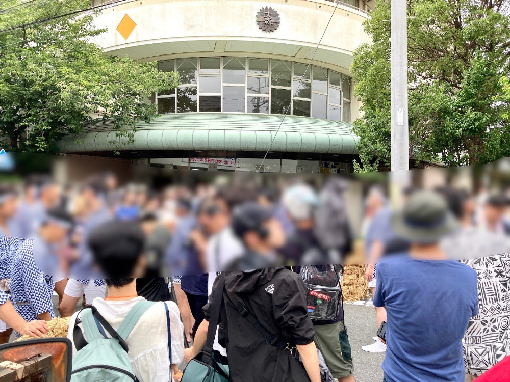 小学校前は大混雑! テレビ局の取材クルーや個人の配信者、観客でごった返しています。大森町にこんなに人が集まっているのは初めて見ました……! 注目度の高さが伺えます