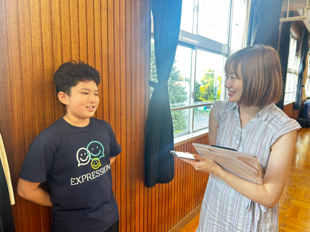 「セリフを喋るのも初めてで難しいんですけれど、頑張ってます! プロの先生に歌を習えて嬉しいですね」と語ります。休憩中はみんなと元気いっぱいに遊びながら、練習中はスッと切り替えて、真剣に練習に取り組んでいました。