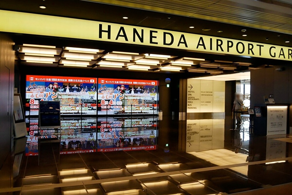 8月4日、羽田エアポートガーデンに到着すると、入り口の大きなデジタルサイネージや、至るところに『赤毛のアン』ステージの告知が!