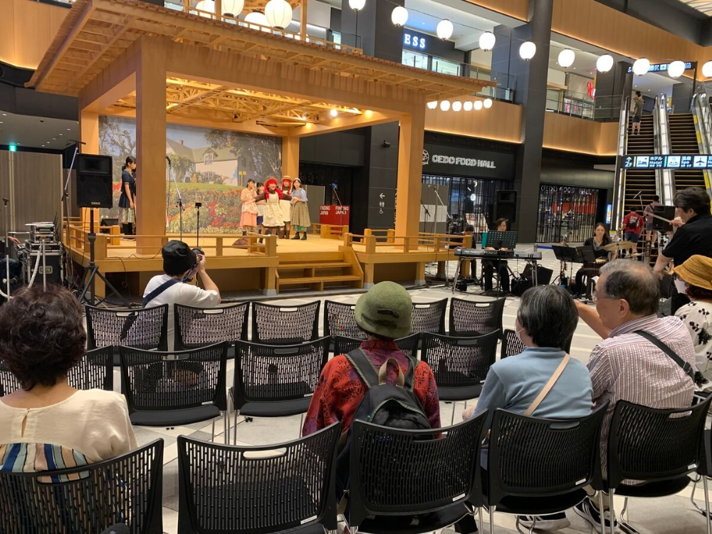 本番のステージの前には、観覧エリアいっぱいにたくさんのお客さんが。出演者のご家族やご友人はもちろん、行き交う人々も一体何が始まるのかと立ち止まってステージを見つめます。
