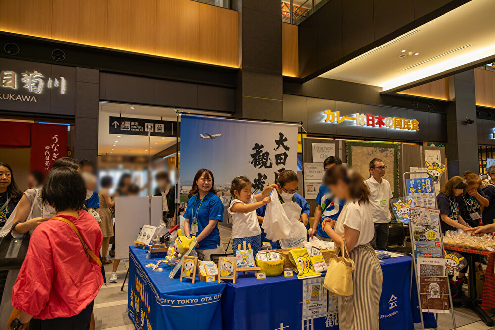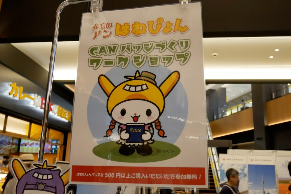 ステージの横には大田区の魅力発信の観光ブースや、カナダ&プリンス・エドワード島の紹介ブースが設置され、はねぴょんも大田区の魅力をしっかりPR!