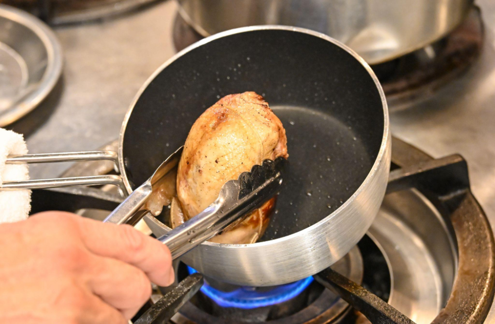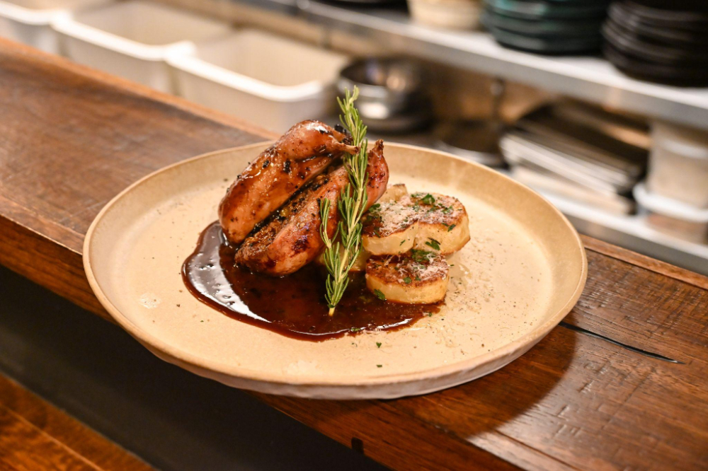 弾力のあるうずらの肉は、噛めば噛むほど旨味が染み出してきて、中に詰められた甘酸っぱい具材の味と合わさって、複雑かつ上品な味わいです。あふれる美味しさを全部受け止めたくて、食べ切るまで無言で集中していました。