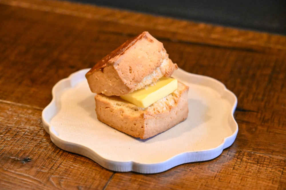 それぞれのお料理と一緒に、スコーンもいただきます。甘さ控えめでサクサクとした食感が特徴的で、意外にも食事に合わせるのにぴったり。