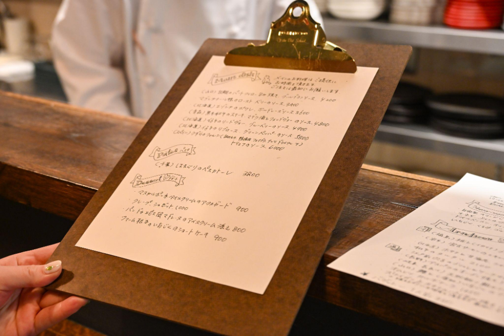 市場に新しい食材が出たら、すぐにメニューに取り入れ、お客様に季節の味を楽しんでもらいたいというシェフの想いが詰まっています。