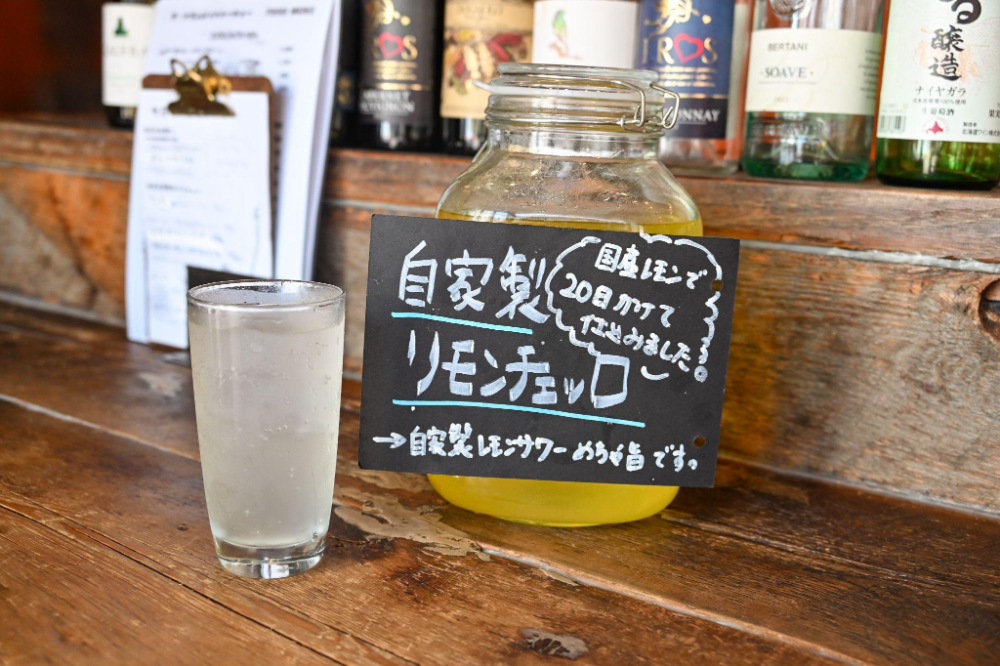 こちらは、すべて手作りで仕込まれているという、こだわりっぷり。スピリタスにレモンの皮を漬け込み、自家製シロップとレモン果汁を加えて作られたリモンチェッロ。それを炭酸で割れば、自家製レモンサワーの完成です。