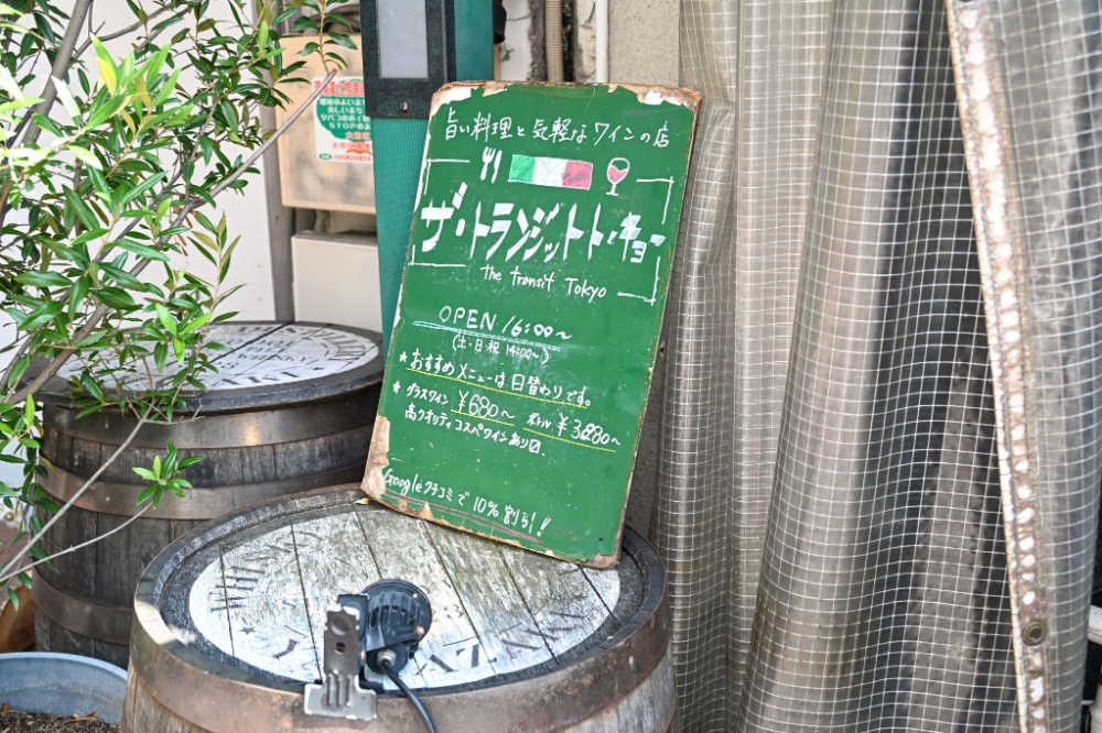 レトロな看板の並ぶ通りの中にあって、モダンな外観が目を引く、「ザ・トランジット トーキョー」。