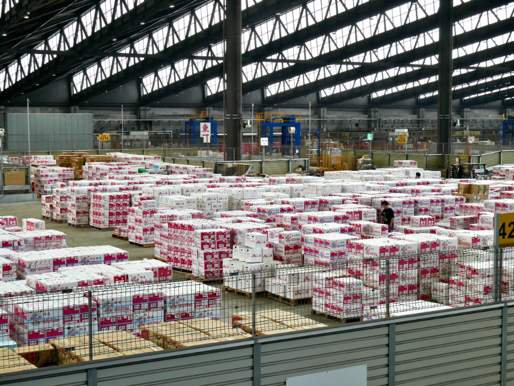 大田市場は、平成元年に開設された、東京ドーム8.5個分もの広~い敷地がある日本最大級の市場です。青果部・水産部・花き(かき)部という3つの部門があって、青果部・花き部は日本一の取扱規模なのだそう。