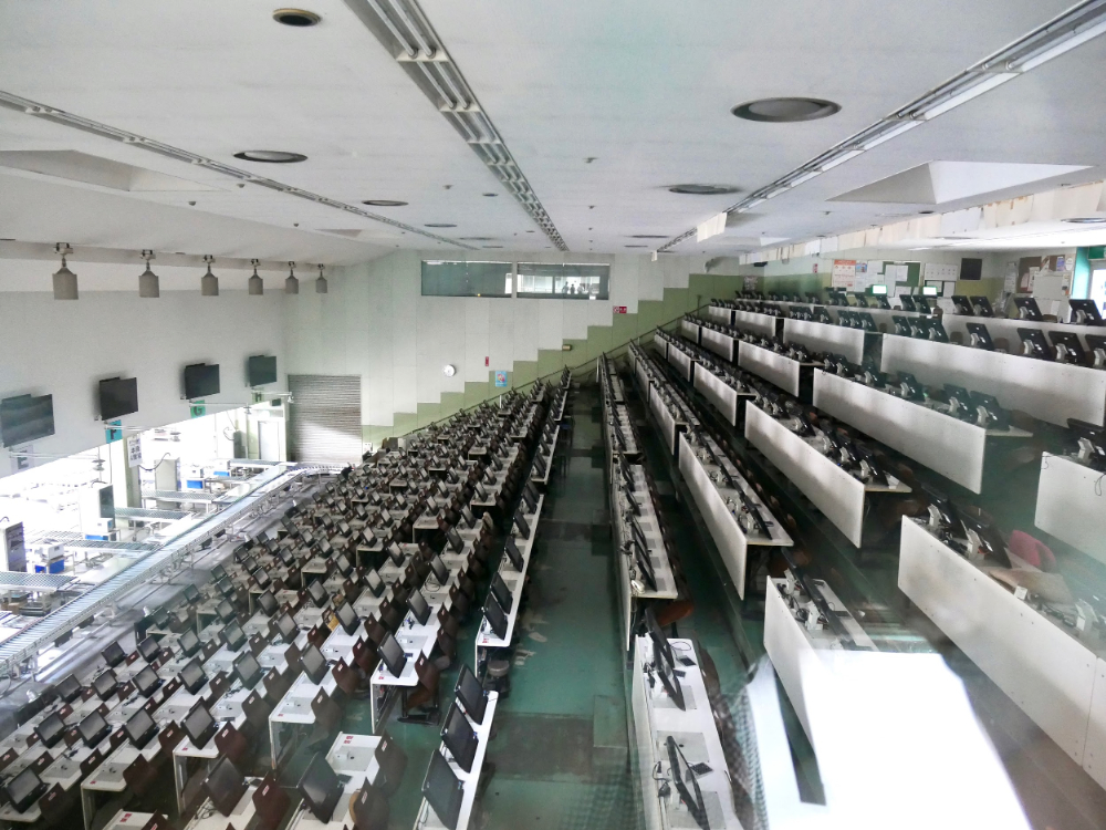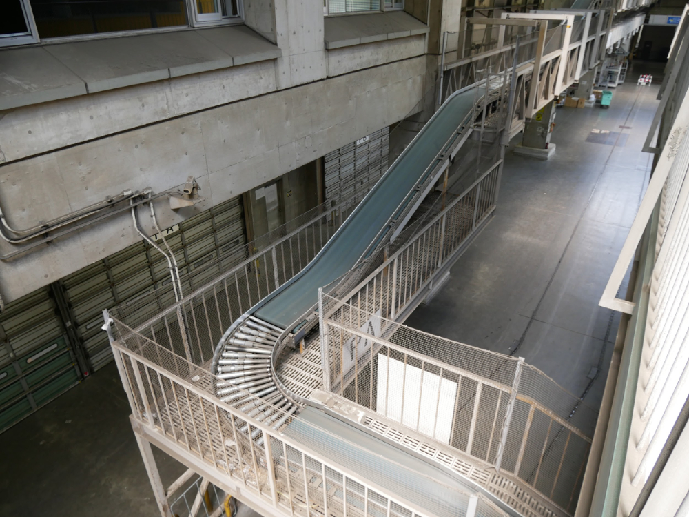 花や観葉植物が流れてくるであろうレーン。あちこちが機械化された工場のようで、青果・水産とはまったく違う雰囲気を感じました。