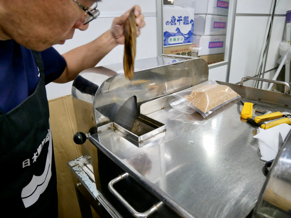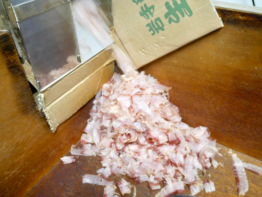 ほぼ毎朝店内で削っているという「鰹けずり節」。特別に削っているところを間近で見せていただきました!