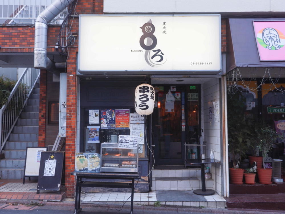 最後に立ち寄ったのは、洗足池の商店街にある焼き鳥店「串ろう」。モノトーンの外観に粋な提灯が目を引き、店内もシックでオシャレです。