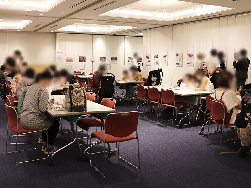 平和記念式典という名前からして、厳粛なもののはず……とドキドキしていましたが、会場は思ったよりは和やかな雰囲気。当時の大田区の様子を伝えるパネル展や、お絵描き風鈴、折り鶴などのワークショップも開催されています。