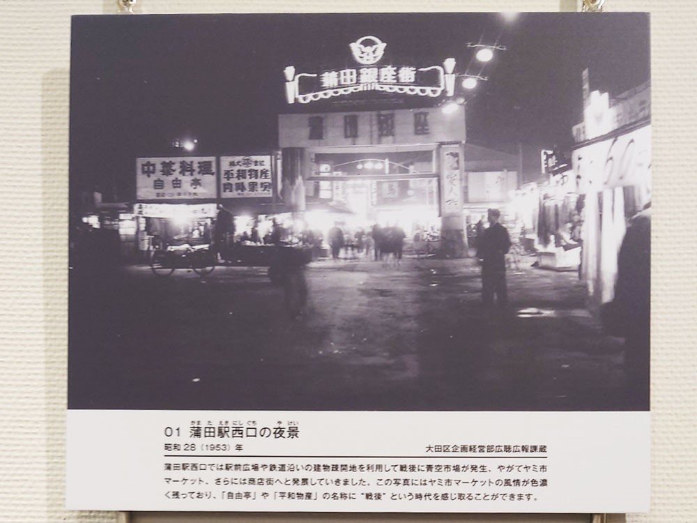 パネル展では、昔の蒲田駅の姿も。今とは全然違う夜景が広がっています。