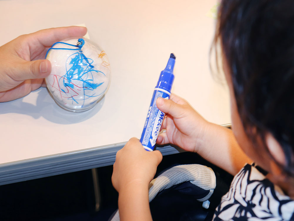 こどもは真剣、親は油性ペンのフォローにてんやわんや。こんな何気ない光景にも「平和」を感じます。