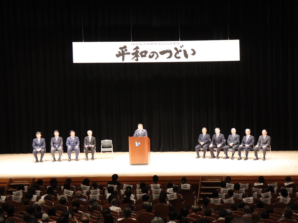 式典の由来は、40年近く前まで遡ります。大田区は1984年(昭和59年) 8月15日に、世界の恒久平和と人類の永遠の繁栄を願い、「大田区平和都市宣言」を行いました。以降、大田区では毎年平和を願う様々な催しが開かれています。