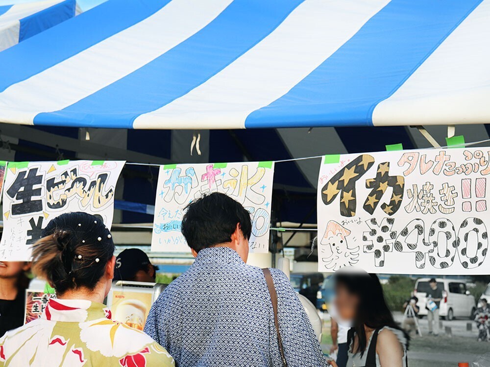 おかげで思ったよりスムーズに到着。土手で一番に目に入ってくるのは、たくさんの屋台。イカ焼きに、かき氷、ケバブ屋さんまで、美味しそうなお店が軒をつらねています。目移りしちゃいますね!