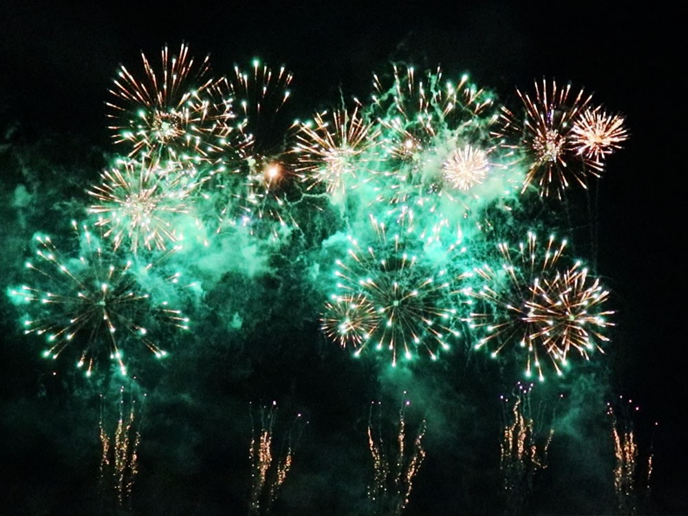 そこからスターマインが連続して一気に上がっていきます。フィナーレだけで一体何発の花火が使われているんだろう?皆さん、息を呑むように静かに見入っています。
