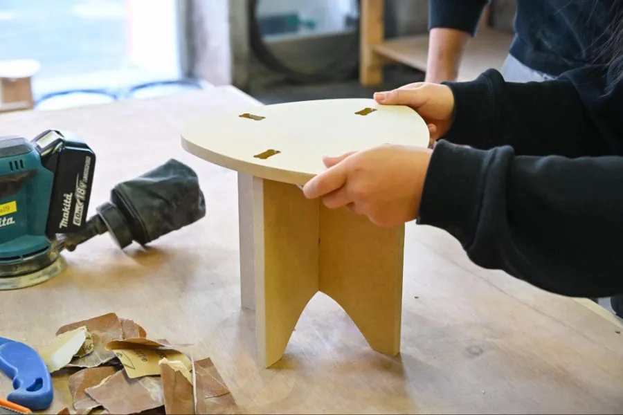 木材が切断できたら、あとは板から切り離して、ヤスリをかけ、組み立てるだけ。あっという間にミニスツールが完成しました!