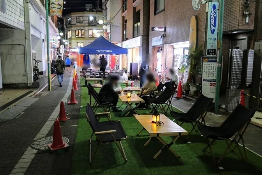 工場めぐりの途中、下丸子の街ではもうひとつの楽しいイベントが開催中でした。「しもまるこストリートキャンピング」です。いつもの商店街が、この日ばかりは特別な空間に変身!