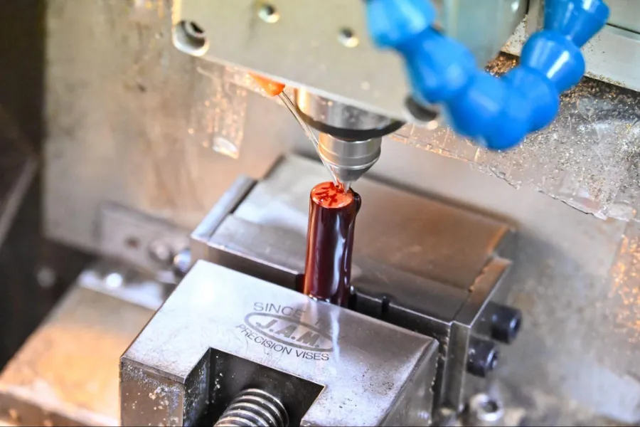 「これまでで一番難しかった仕事は、ヒューズ管という電気回路に使う部品に0.4mmの文字を刻印したことです。それほど小さな刻印は、とても微細な作業で、少しの力加減で文字が潰れてしまうので、機械ではなく手彫りで刻印するんですよ」と教えてもらいました。